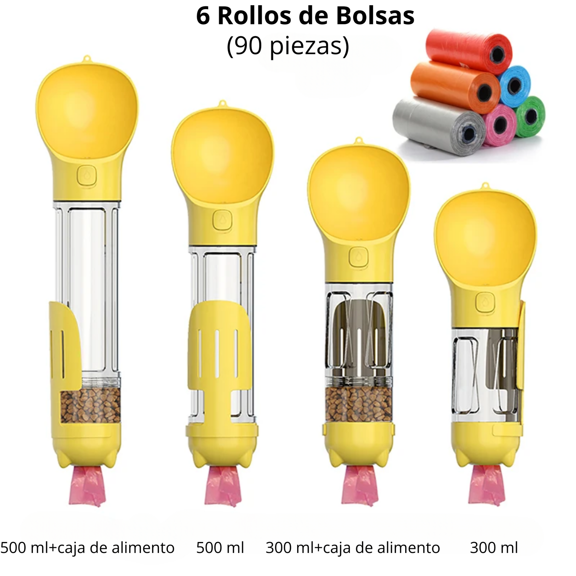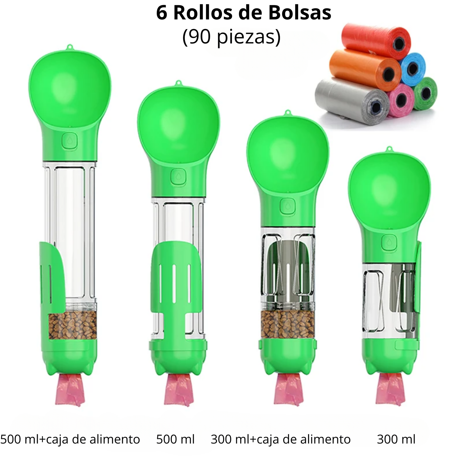 Botella portátil de agua y alimento para perros/gatos 4 en 1 multifuncional a prueba de fugas con bolsas para excremento y palilla