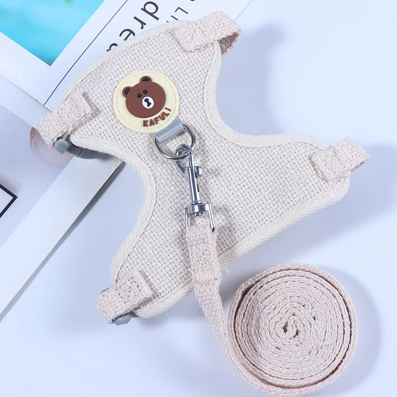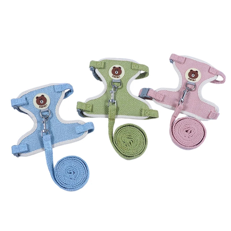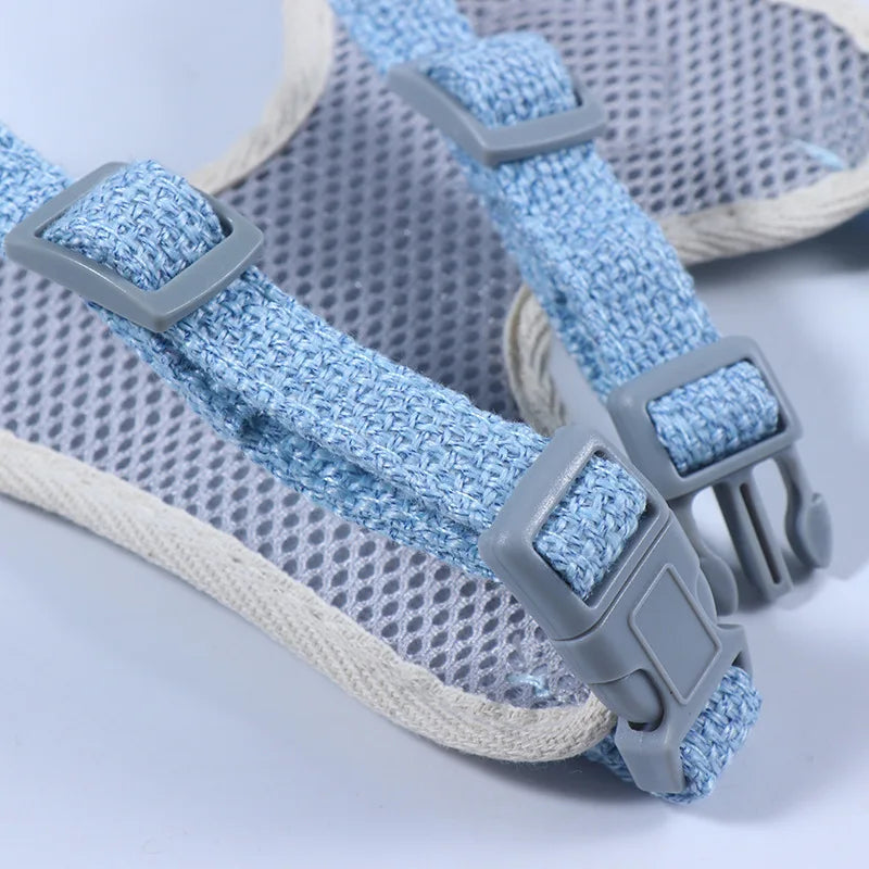 Este conjunto de arnés y correa es perfecto para tus mascotas pequeñas como gatos, perros, cachorros, conejos y conejillos de Indias. Hecho de malla con una mezcla de lino y polyester, es fresco y respirable para el verano. Su diseño personalizado y acolchado lo hace cómodo y seguro, con una hebilla de liberación rápida y material reflejante para mayor seguridad. ¡Disfruten juntos de un paseo seguro y divertido!