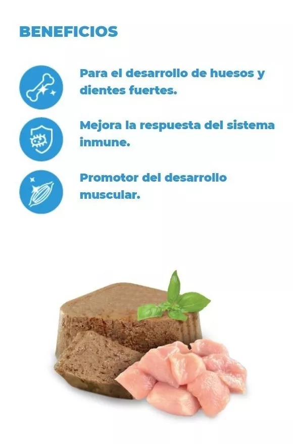- Textura suave y apetitosa perfecta para los cachorros en desarrollo.
