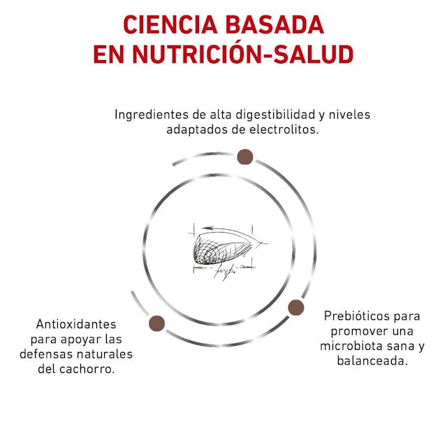Croqueta de fácil rehidratación que ayuda en la ingesta de alimentos en cachorros coninapetencia y ayuda en la transición de la leche al alimento seco.