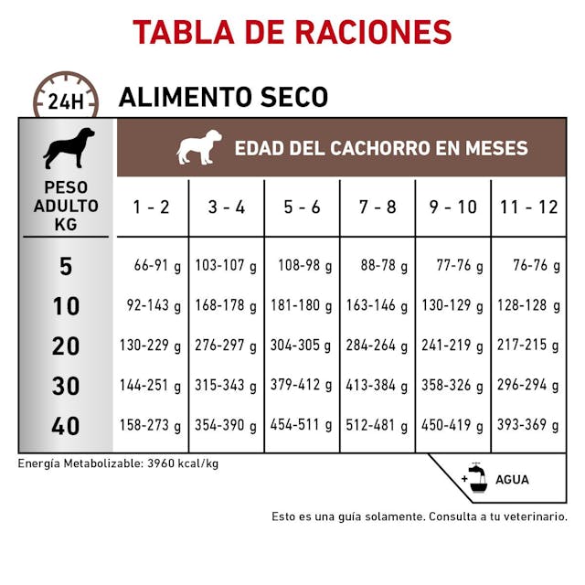 Fórmula de alto contenido energético con niveles adaptados de nutrientes (incluyendoproteínas y calcio) para satisfacer las necesidades de los cachorros en crecimiento.